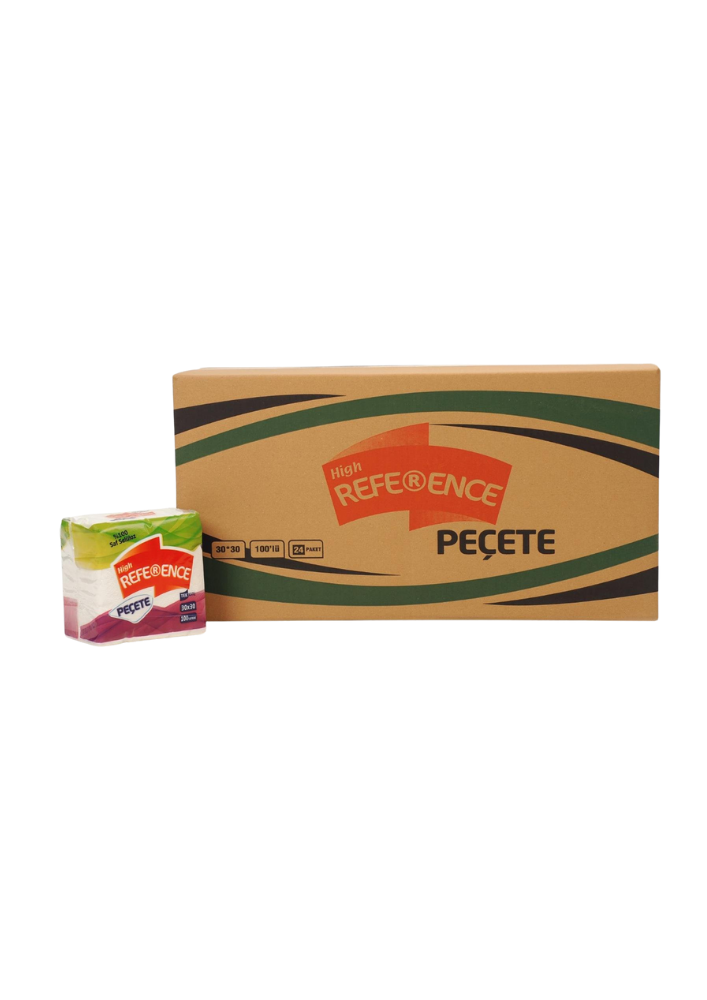 Reference Kare Peçete, günlük kullanım ve özel davetler için ideal, kare şeklinde tasarlanmış kağıt peçetelerdir. Bu ürün, her biri 100 adet peçete içeren 24'lü paketler halinde sunulur, bu da toplamda 2400 adet peçete alacağınız anlamına gelir. Peçetelerin açık hali 30 cm x 30 cm boyutlarındadır. Pratik ve ekonomik bir çözüm sunan bu peçeteler, evde, ofiste veya toplu etkinliklerde hijyenik ve kullanışlı bir seçenektir.